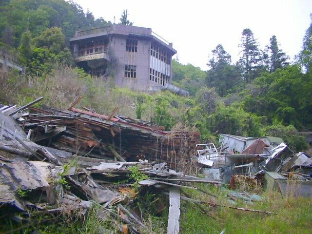 と、そこに一匹の犬を連れたおじさんが廃墟の方角から歩いてきた。